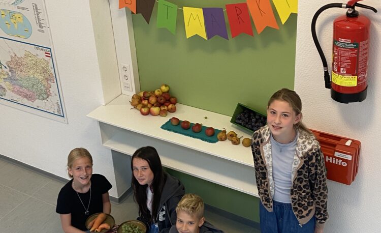 Auf unserem Obststand bieten wir überschüssiges Glaubobst und Gemüse aus unseren Gärten als gesunden Pausensnack zur freien Entnahme an. Danke für euren Beitrag! Insbesondere die zweiten Klassen konnten dies mit…