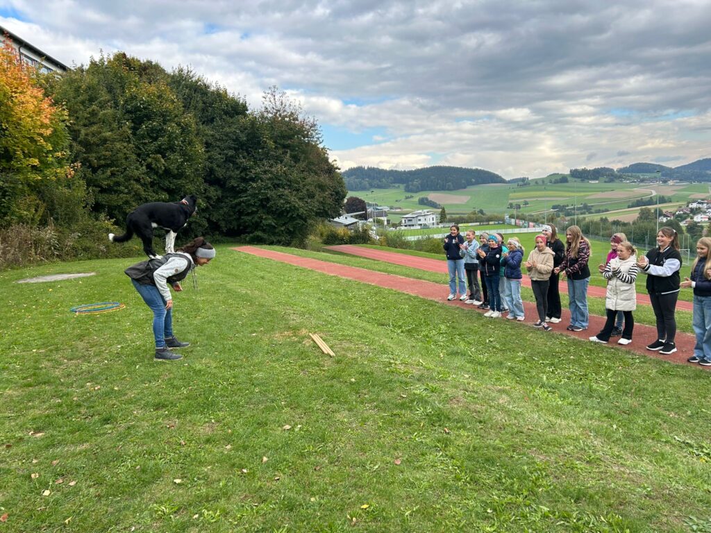 Zum Abschluss des Workshops zeigte uns Frau Anderl Lena gemeinsam mit ihren beiden Hunden Cody und Milo einige wirklich beeindruckende Kunststücke. Die Kinder waren begeistert und staunten nicht schlecht über das Können der beiden Vierbeiner.
