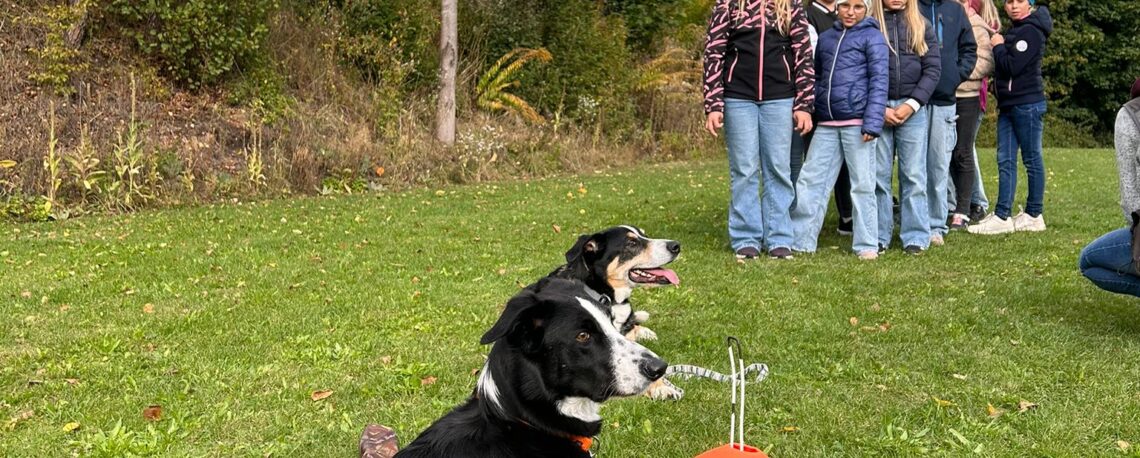 Zum Abschluss des Workshops zeigte uns Frau Anderl Lena gemeinsam mit ihren beiden Hunden Cody und Milo einige wirklich beeindruckende Kunststücke. Die Kinder waren begeistert und staunten nicht schlecht über das Können der beiden Vierbeiner.