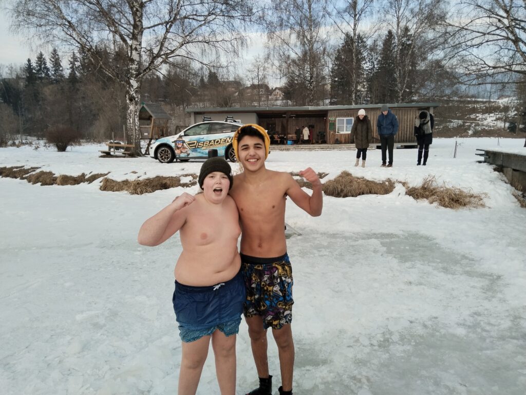 Bei winterlichen Extrembedingungen von + 4° Wassertemperatur und – 9° Lufttemperatur, wagten sich die Kinder ins eiskalte Wasser der Großen Mühl in Ulrichsberg. Erstaunlich dabei: Alle haben sich getraut und meisterten die Situation mit großer Disziplin und gegenseitiger Unterstützung.