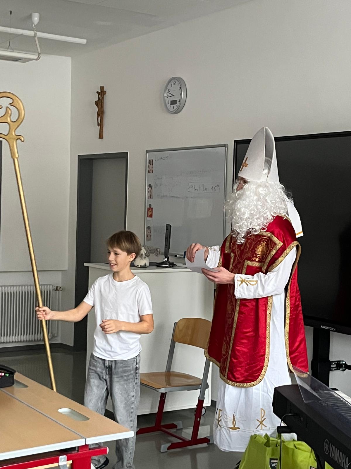Der Nikolaus besuchte die beiden 1. Klassen, die Aufregung war groß. Neben einem kleinen Sackerl bekamen die SchülerInnen vom Nikolaus auch gesagt, was sie gut machen und warum sie ein wertvoller Teil der Klassegemeinschaft sind. Die Kinder bedankten sich bei ihm mit einem Lied.