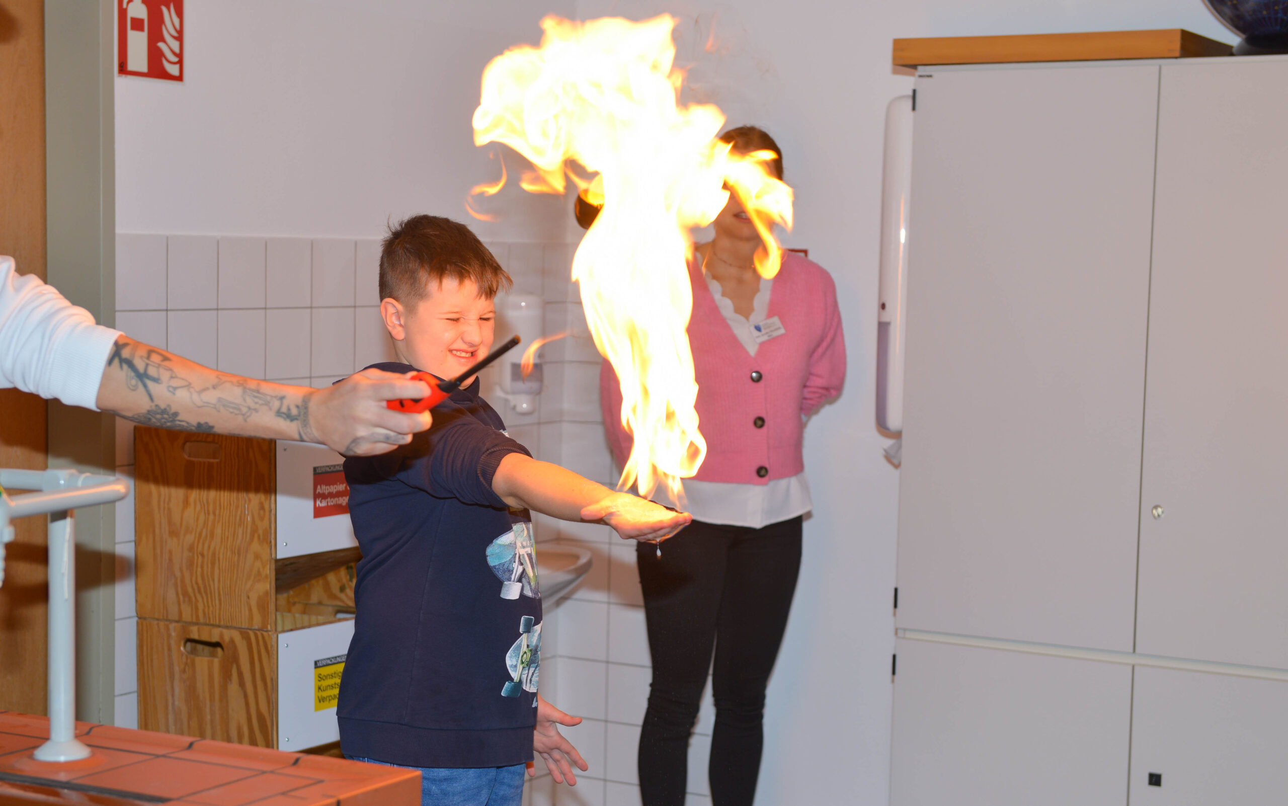 Wir haben uns sehr über das große Interesse an unserer Schule gefreut und uns bemüht, euch an diesem Tag einen authentischen Einblick in unseren lebhaften Schulalltag zu geben. An den verschiedensten Stationen konnten unsere Besucher selbst aktiv werden: Im Turnsaal zum Beispiel gab es großen Parcours wo Mut und Geschick gefragt waren, während in der Schulküche Waffeln gebacken und vernascht wurden. Musikalisch und kreativ ging es in den Musik- und Werksälen zu, wo fleißig ausprobiert und gestaltet wurde. Für staunende Gesichter sorgten die spektakulären Versuche in Physik, bei denen die „brennende Hand“ natürlich das Highlight war. Auch die Digitalisierung kam nicht zu kurz, etwa beim „digitalen English“, das zeigte, wie modern und spielerisch Sprachenlernen bei uns funktioniert.