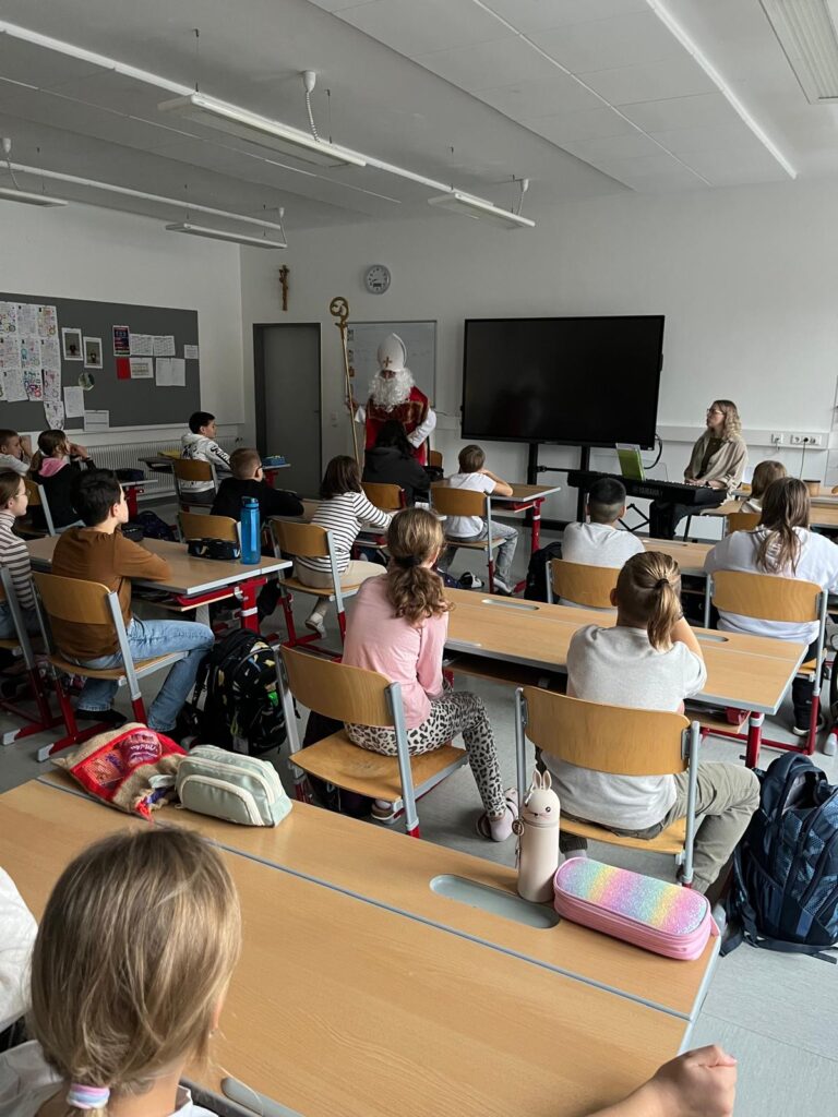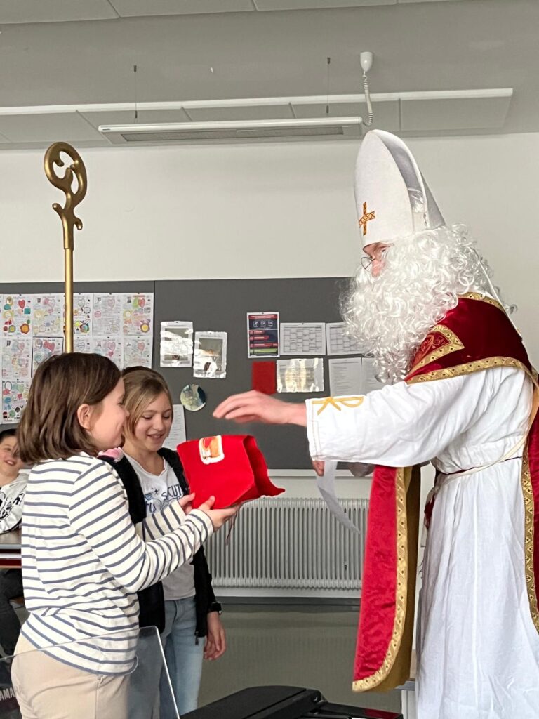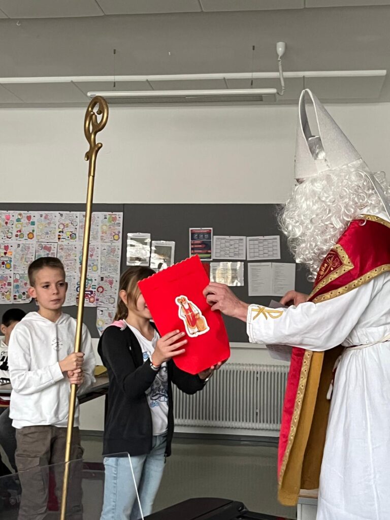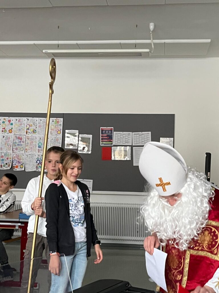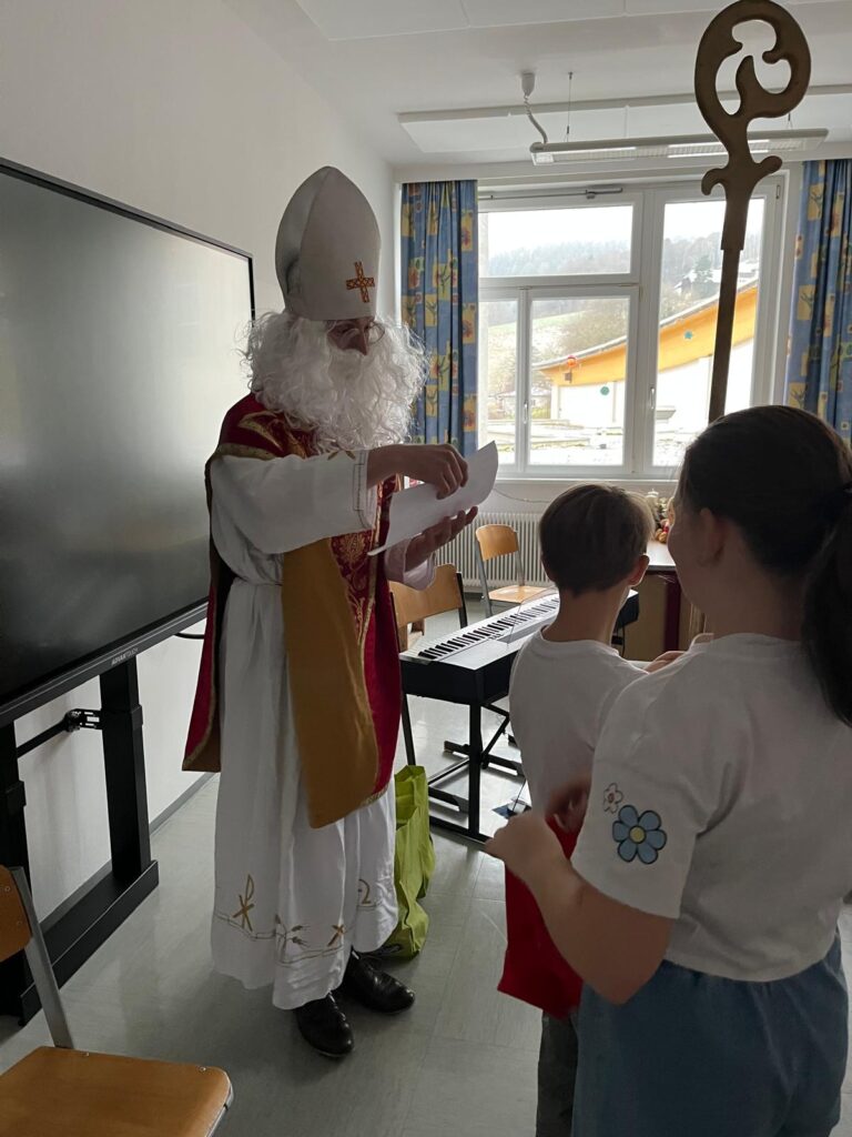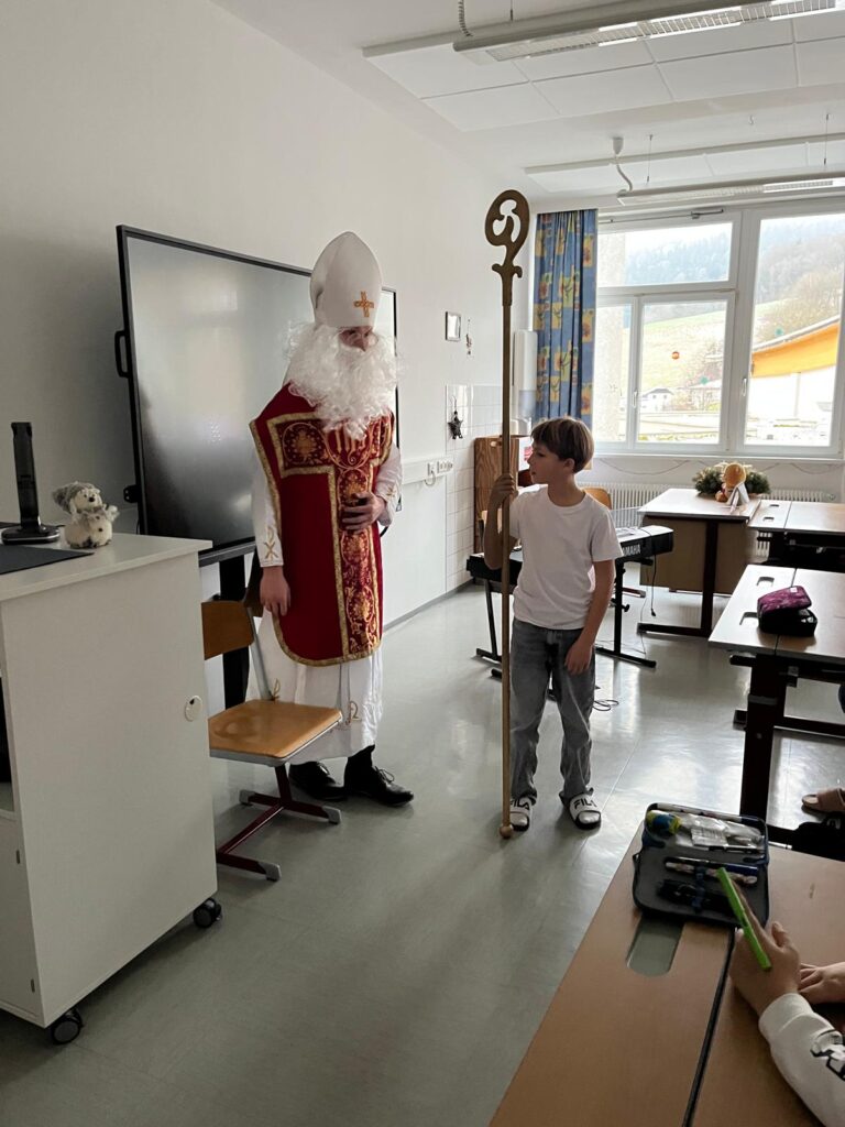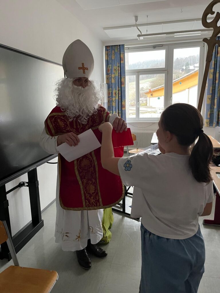 Der Nikolaus besuchte die beiden 1. Klassen, die Aufregung war groß. Neben einem kleinen Sackerl bekamen die SchülerInnen vom Nikolaus auch gesagt, was sie gut machen und warum sie ein wertvoller Teil der Klassegemeinschaft sind. Die Kinder bedankten sich bei ihm mit einem Lied.