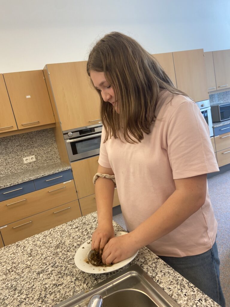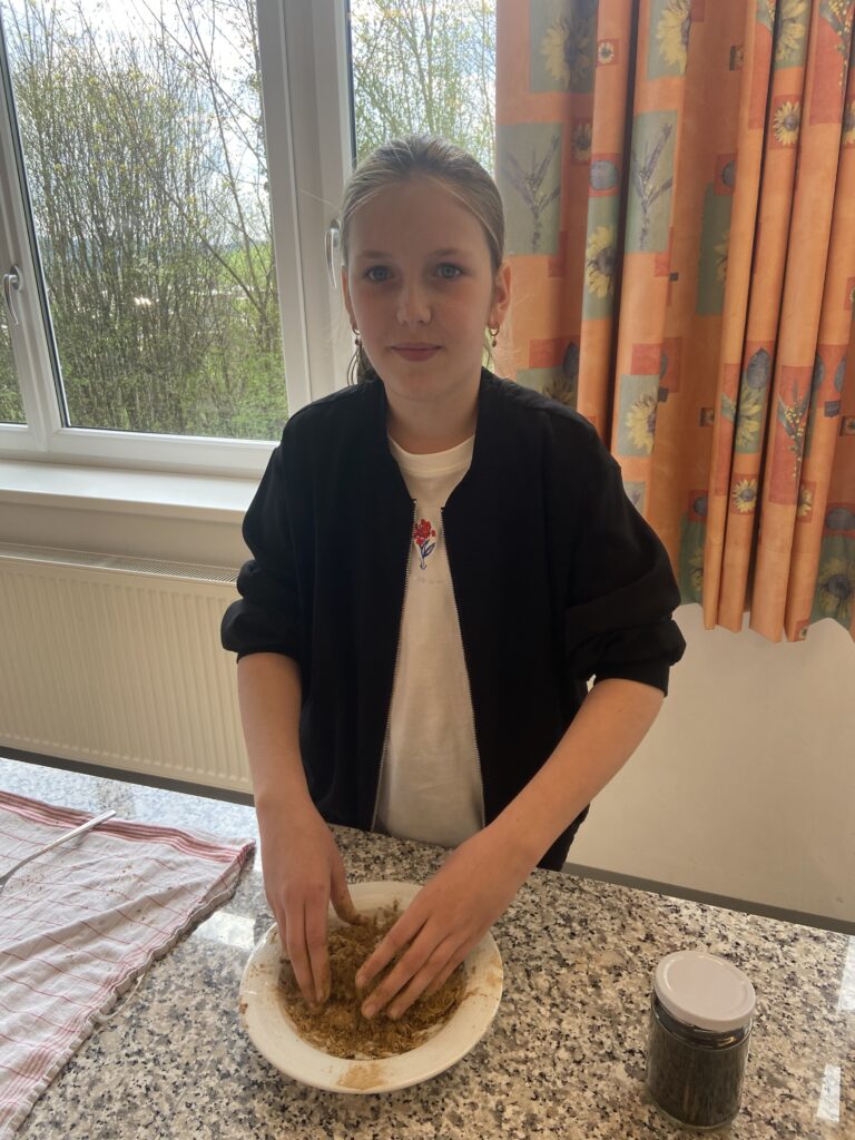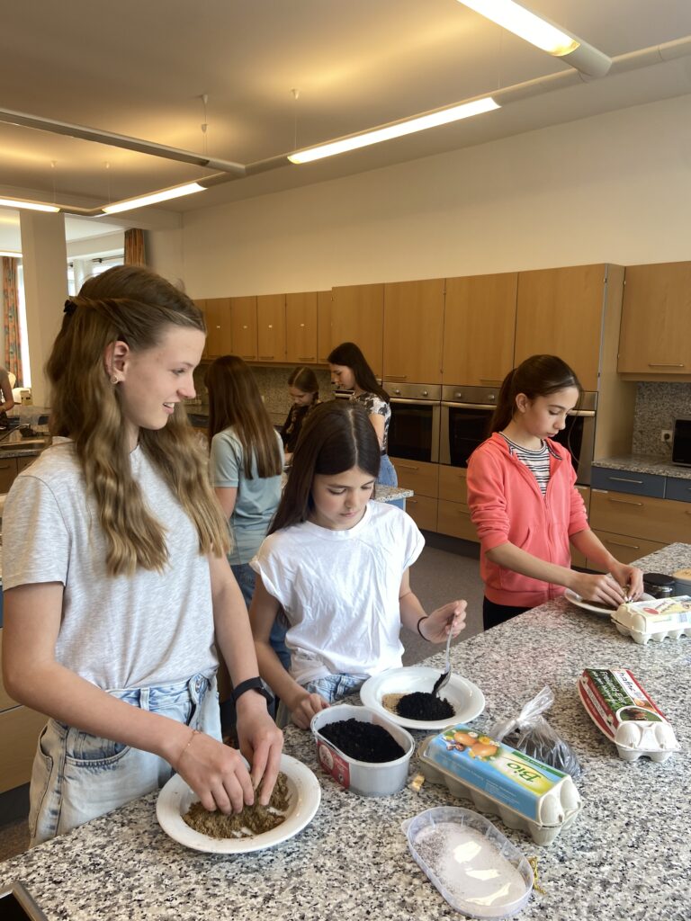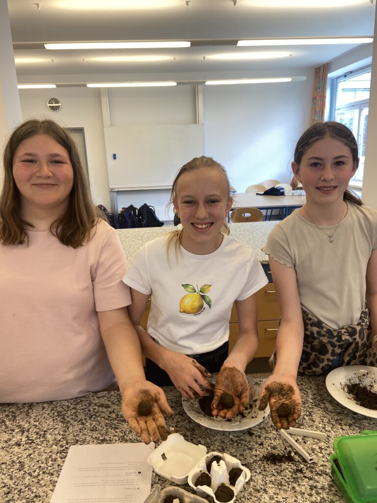 „Heute war ein schöner Tag, denn wir hatten Powergirls. Wir haben Saatkugeln gemacht, das war eine matschige Angelegenheit 🙂 Diese streut man im Garten aus, damit schafft man neuen Lebensraum für z.B. Schmetterlinge. Danach haben wir ein DIY Körperpeeling gemacht. Mit Zucker, Öl und ätherischen Düften stellst du deine eigene Kosmetik – ganz ohne Mikroplastik und unnötiger Chemie her.