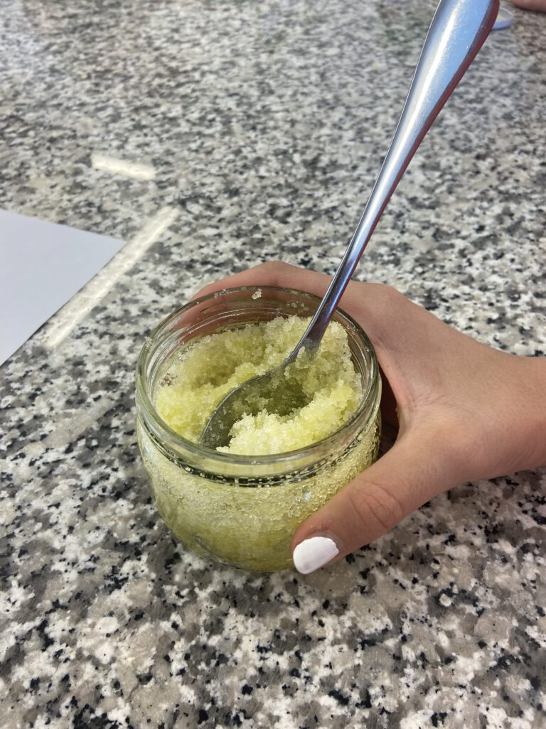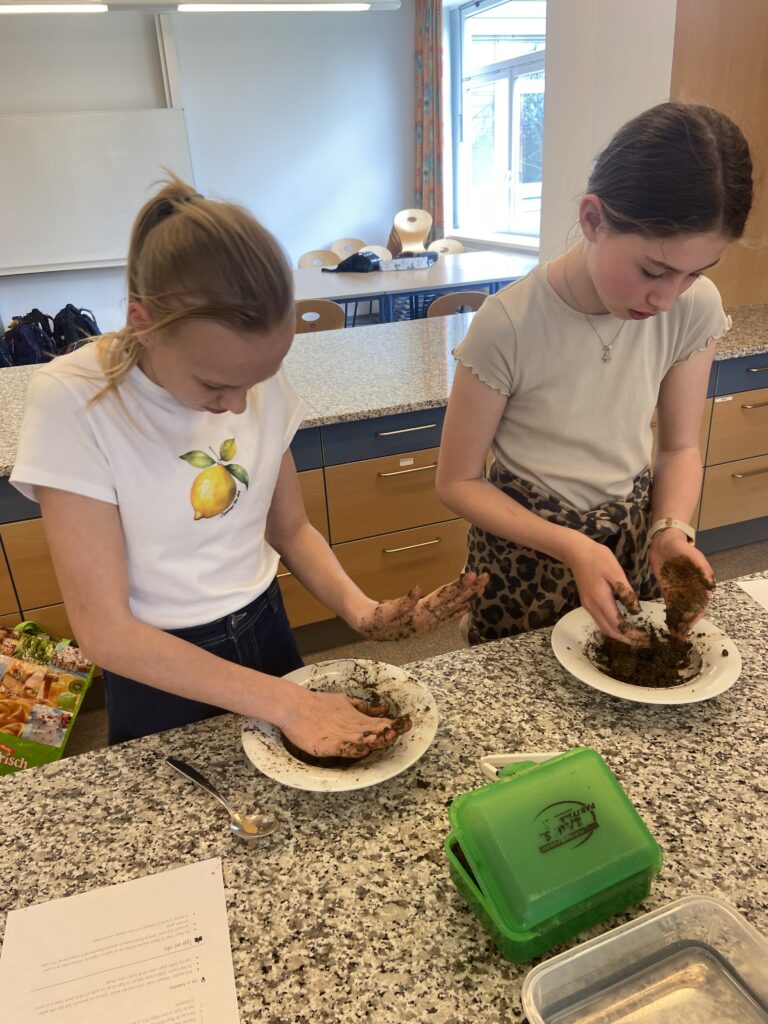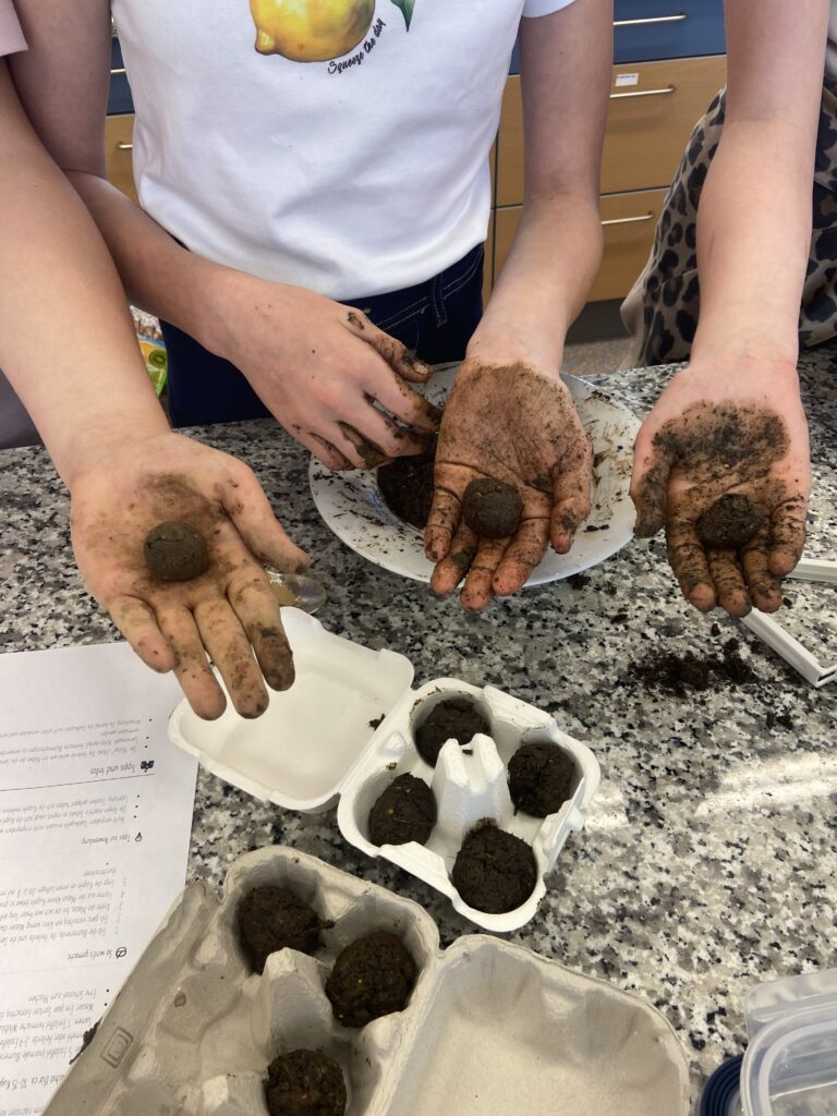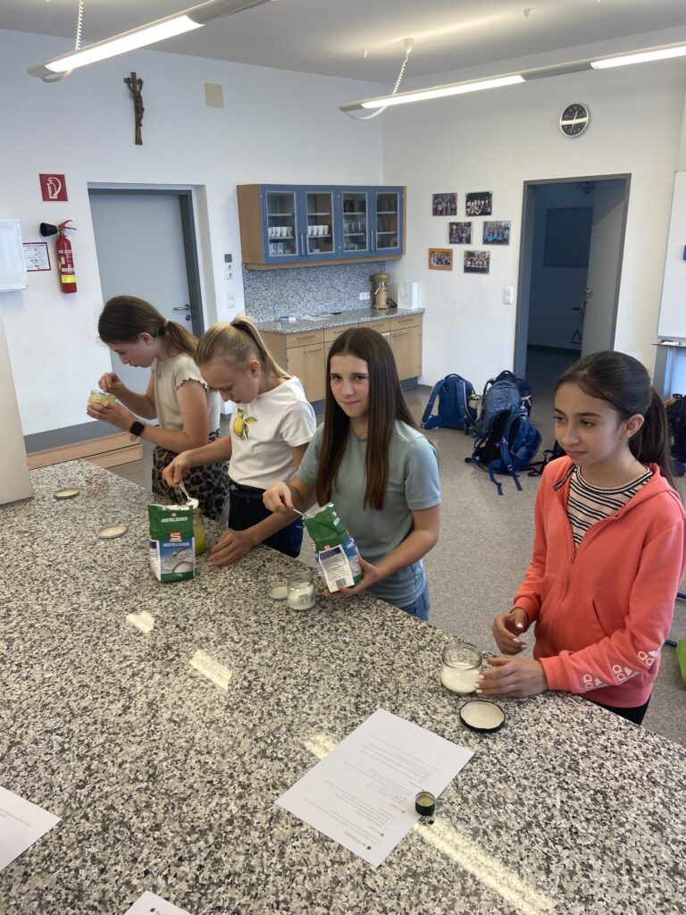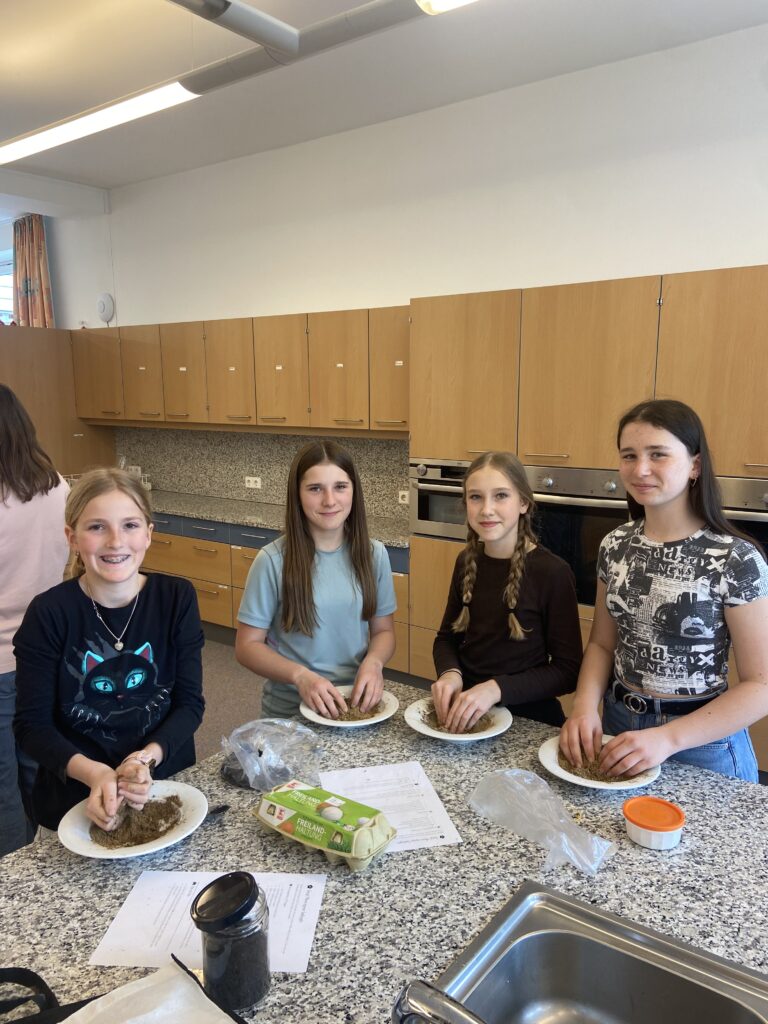 „Heute war ein schöner Tag, denn wir hatten Powergirls. Wir haben Saatkugeln gemacht, das war eine matschige Angelegenheit 🙂 Diese streut man im Garten aus, damit schafft man neuen Lebensraum für z.B. Schmetterlinge. Danach haben wir ein DIY Körperpeeling gemacht. Mit Zucker, Öl und ätherischen Düften stellst du deine eigene Kosmetik – ganz ohne Mikroplastik und unnötiger Chemie her.