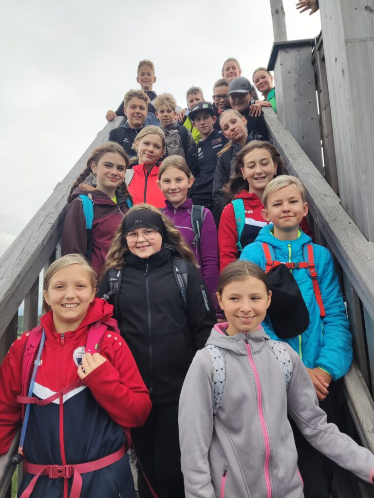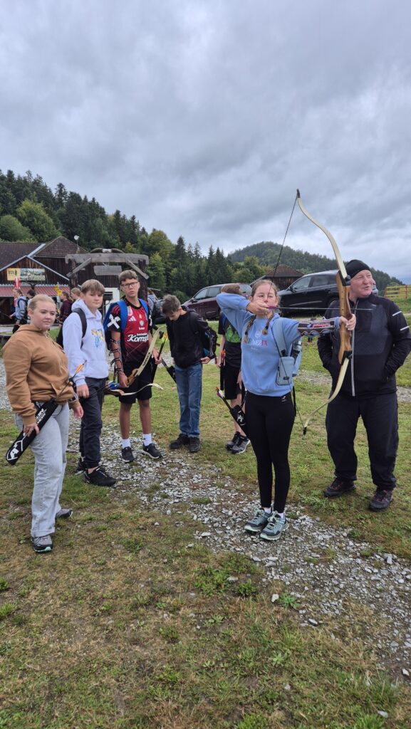 Für die 4. Klassen ging es nach Peilstein zum Bogenschießen. Gemeinsam wurde raufgewandert und dort in kleinen Gruppen, mit Pfeilen und Bögen ausgestattet, zwei unterschiedliche Parcours bewältigt. Anschließend konnten die SchülerInnen sich beim Knacker braten stärken.