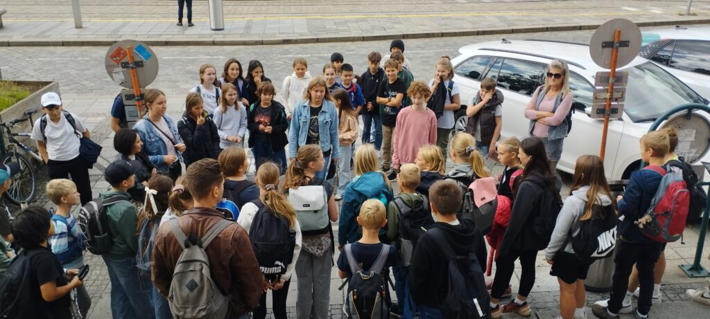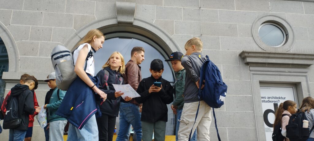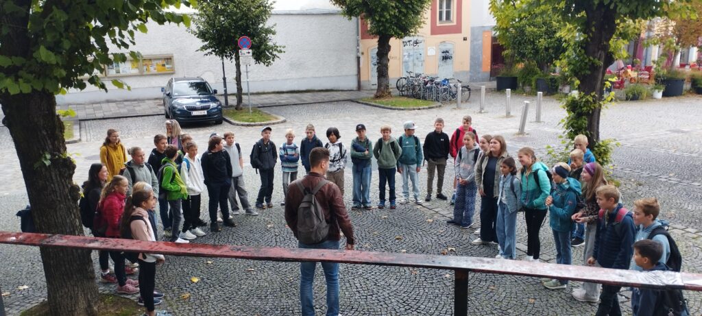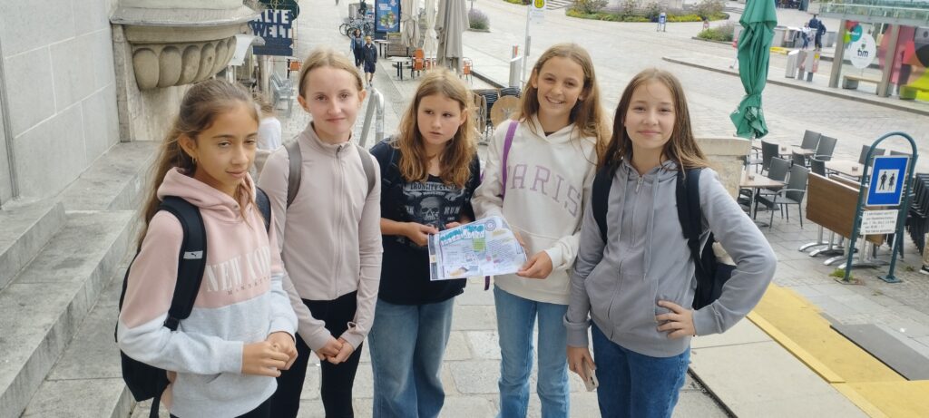 Die 2. Klassen trafen sich mit ihren BrieffreundInnen von der MS Traun am Linzer Hauptplatz. Dort begaben sie sich gemeinsam auf eine spannende Schnitzeljagd und anschließend gab es eine Führung durchs Schlossmuseum.