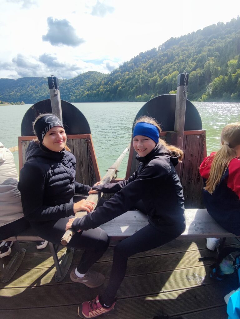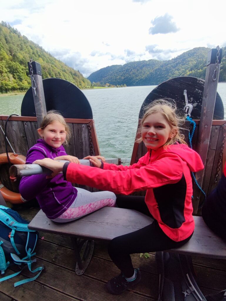 Die 3. Klassen wanderten von Kirchberg aus nach Obermühl. Dort wartete ein Wikingerschiff auf die SchülerInnen, mit dem sie 1,5 h auf der Donau unterwegs waren und dabei selber rudern durften.