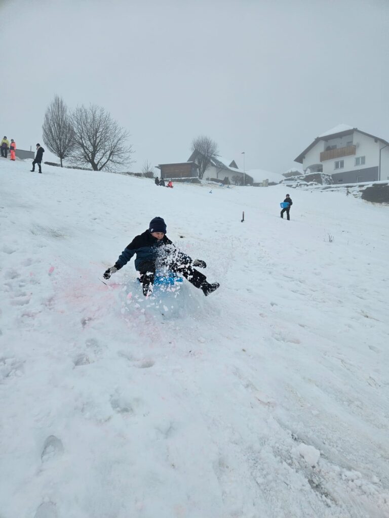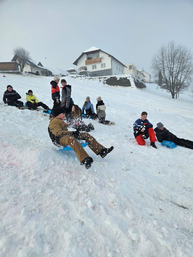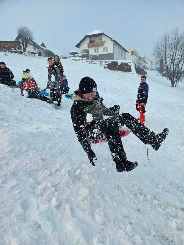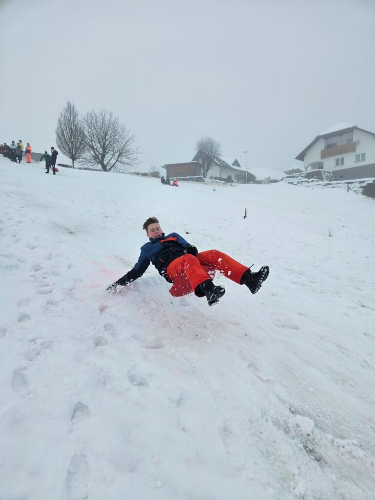 Die umliegenden Hänge wurden zur Rennstrecke erklärt, als unsere Schülerinnen und Schüler mit den Bobs den Schnee unsicher machten. Ob rasante Abfahrten, lustige Wettrennen oder Sprünge über die Schanze – der Spaß und die Bewegung an der frischen Luft standen an oberster Stelle. Solche Tage schweißen die Klassengemeinschaft zusammen und tanken die Energiespeicher für den Unterricht wieder voll auf.