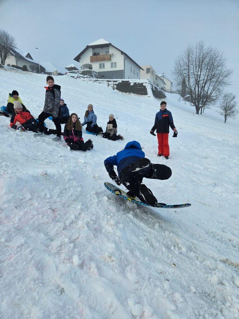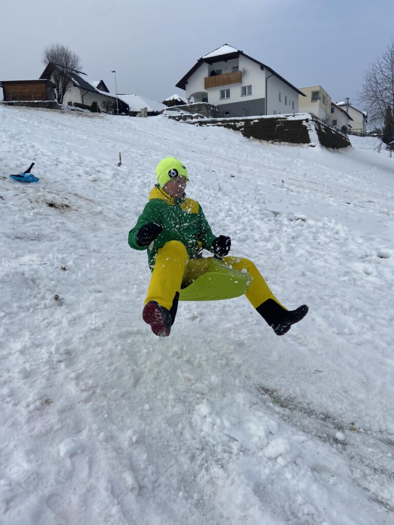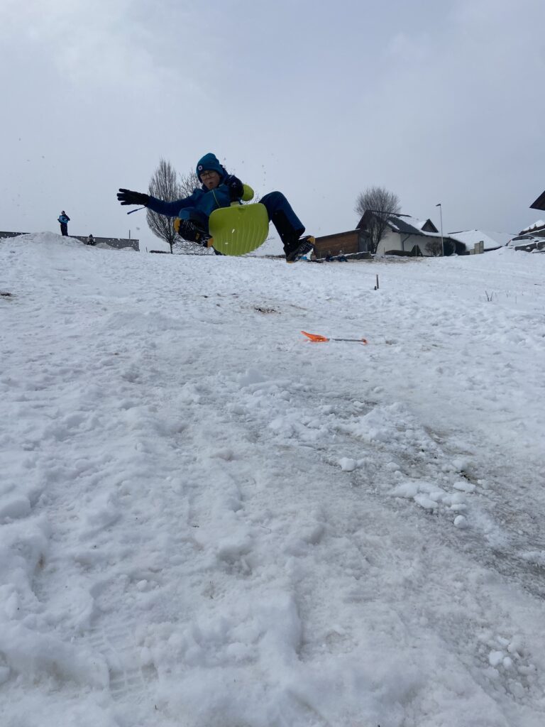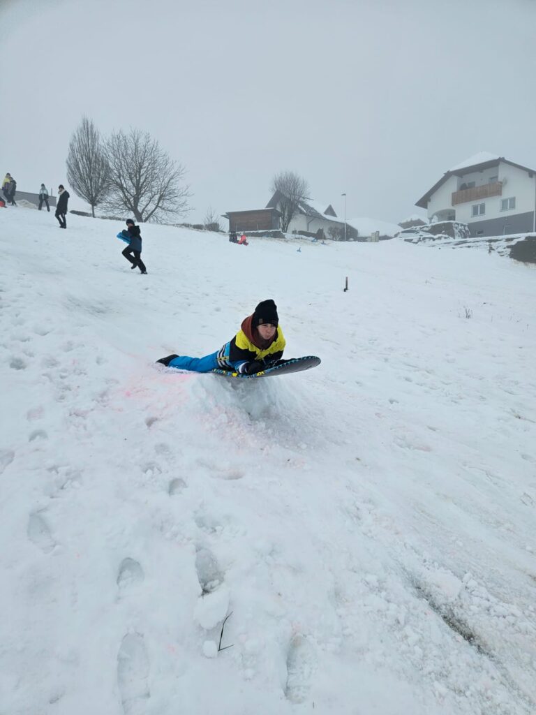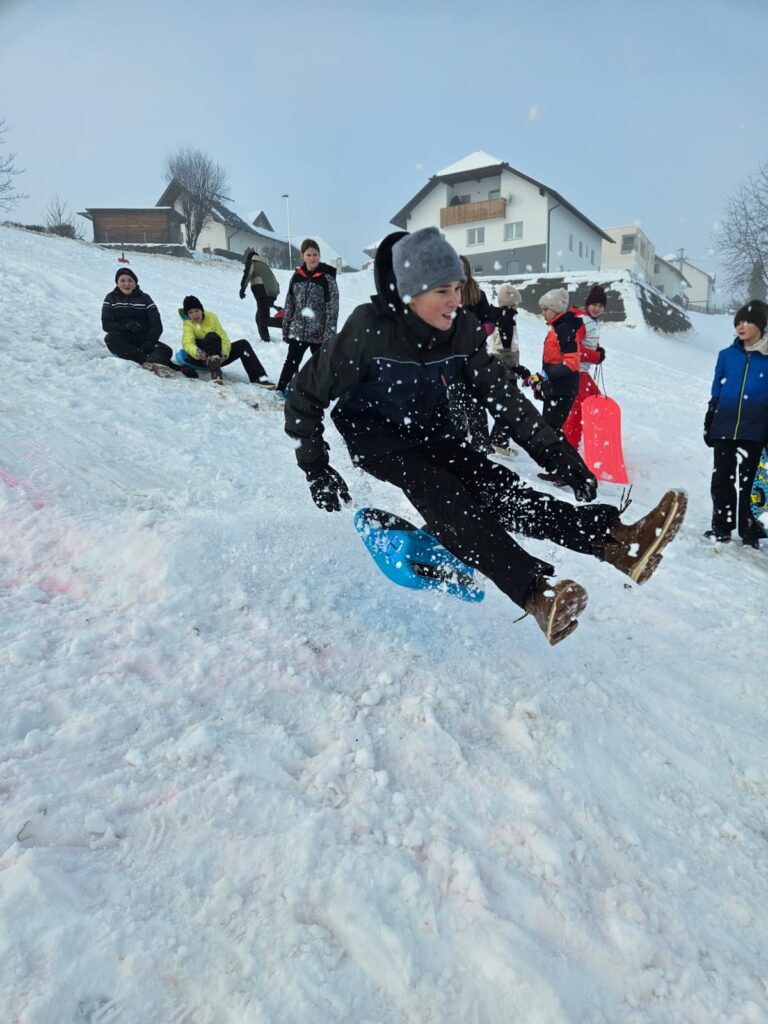 Die umliegenden Hänge wurden zur Rennstrecke erklärt, als unsere Schülerinnen und Schüler mit den Bobs den Schnee unsicher machten. Ob rasante Abfahrten, lustige Wettrennen oder Sprünge über die Schanze – der Spaß und die Bewegung an der frischen Luft standen an oberster Stelle. Solche Tage schweißen die Klassengemeinschaft zusammen und tanken die Energiespeicher für den Unterricht wieder voll auf.